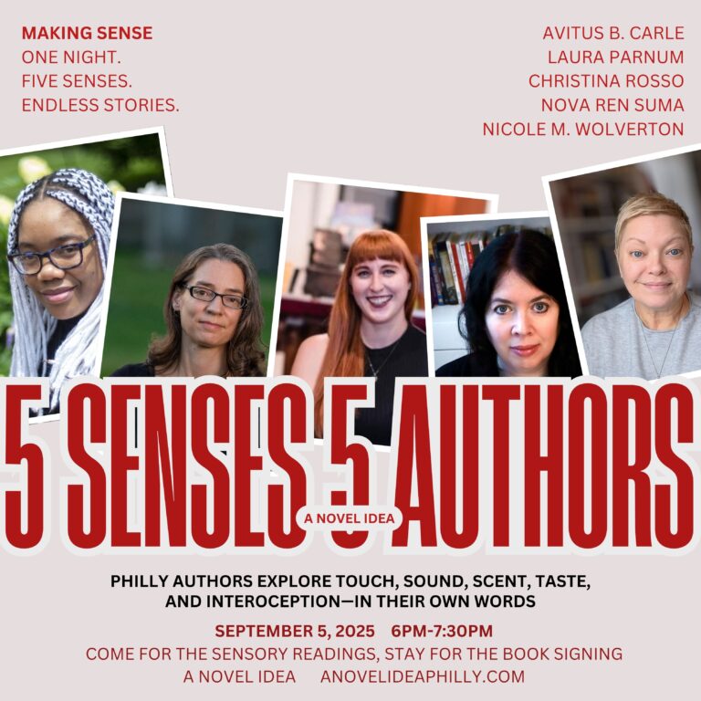 Join me, Nova Ren Suma, Laura Parnum, Avitus B. Carle, and Christina Rosso for readings that explore touch, sound, taste, scent, and interoception! Book signing to follow.